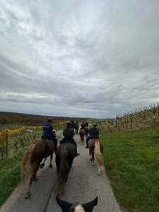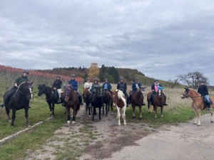 Die Strecke führte durch den farbenfrohen Wald und vorbei an den herbstlich leuchtenden Weinbergen rund um Knittlingen und Kleinvillars. Dabei kamen sowohl Pferd als auch Reiter voll auf ihre Kosten – die Tiere zeigten sich entspannt und brav, und die Teilnehmer genossen die gemütliche Ausfahrt in geselliger Runde.